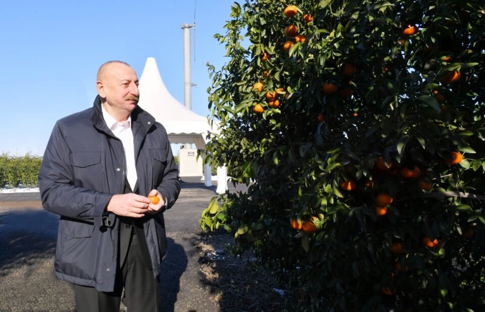 Azfood.az xəbər verir ki, dövlətimizin başçısı “Lenk Fruit” Məhdud Məsuliyyətli Cəmiyyətinin (MMC) Lənkəran rayonunun Separadi kəndində yeni salınmış sitrus bağında yaradılan şəraitlə tanış olub.
